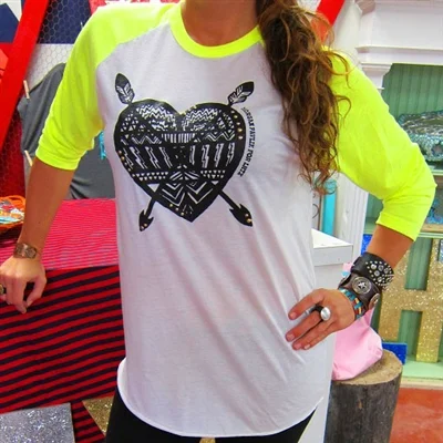 A little over a month ago I had the pleasure of meeting Leigh Hajovsky through our mutual friend, Tami. Leigh is the owner and designer of LHTX by Leigh K Hajovsky, a made in Texas apparel line with a fun twist. Check out her website here. She's got great tees, tanks, dresses, and tons more! I particularly like this raglan with the pop color sleeve...