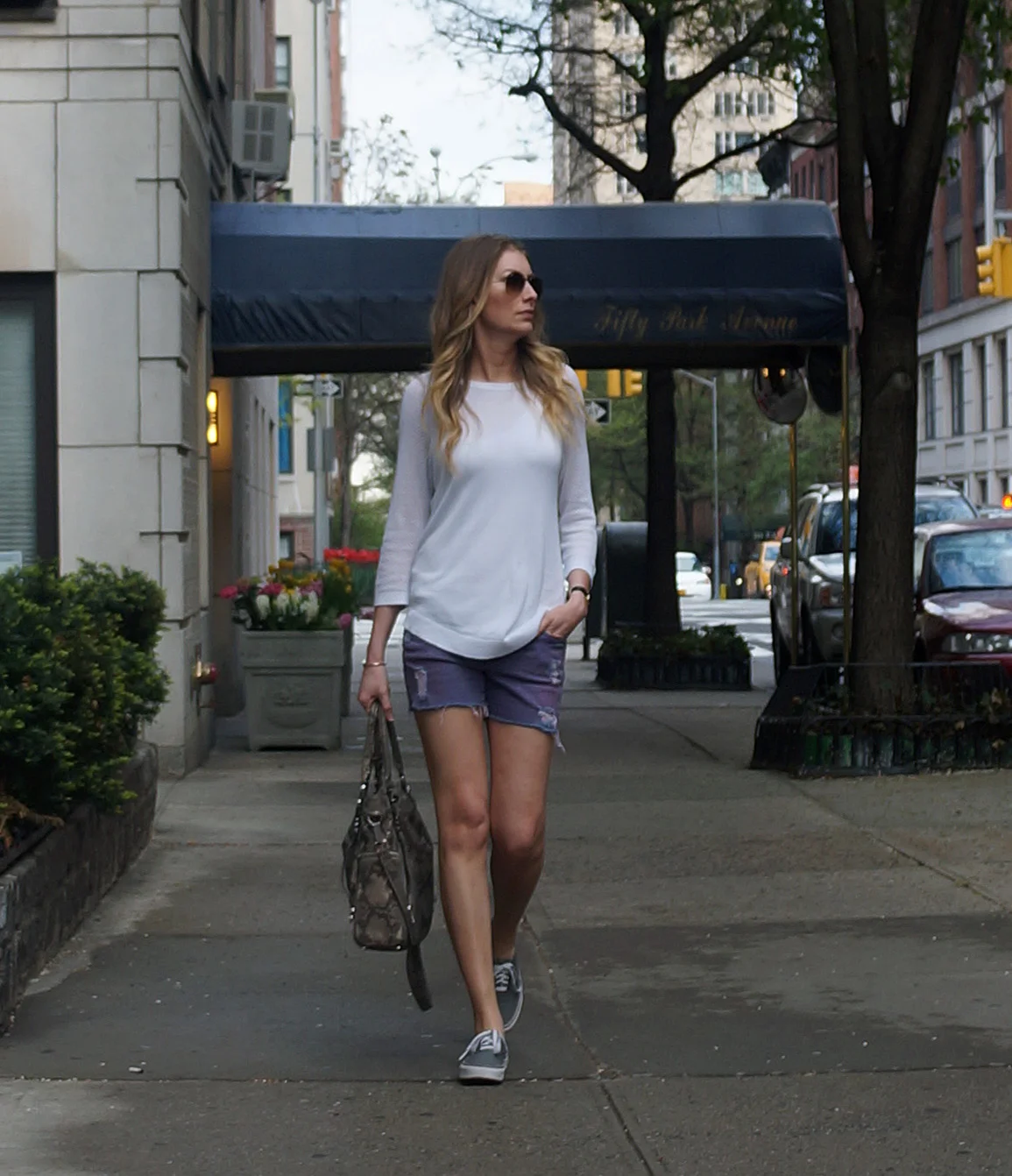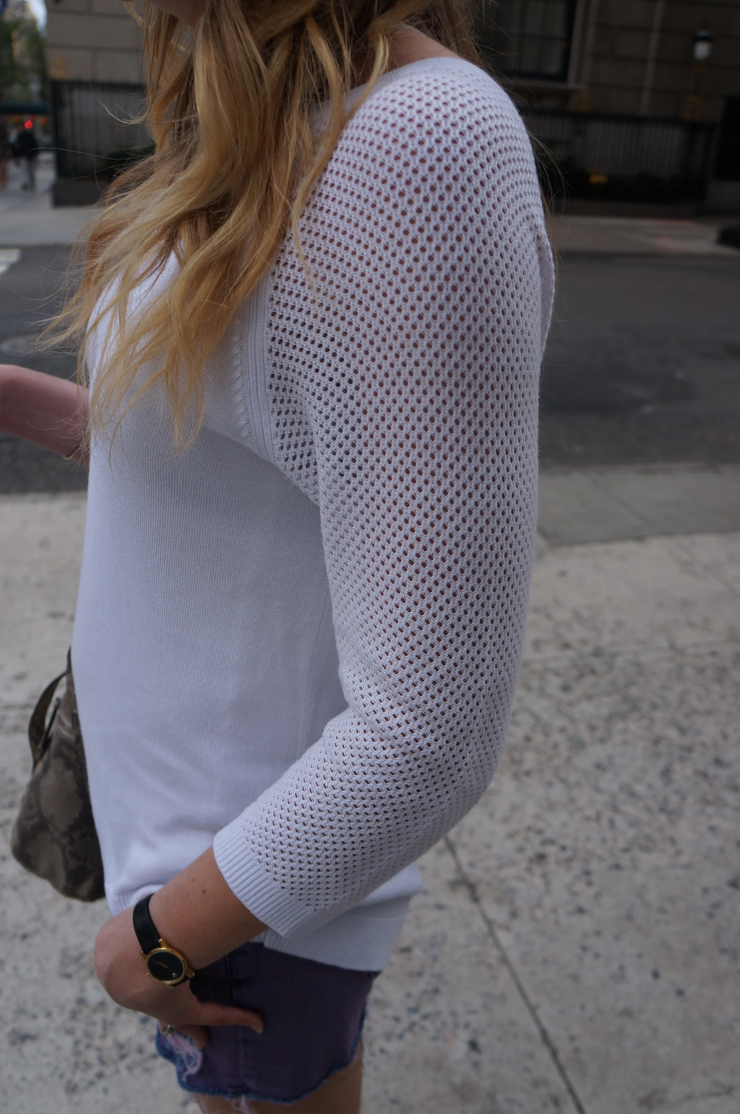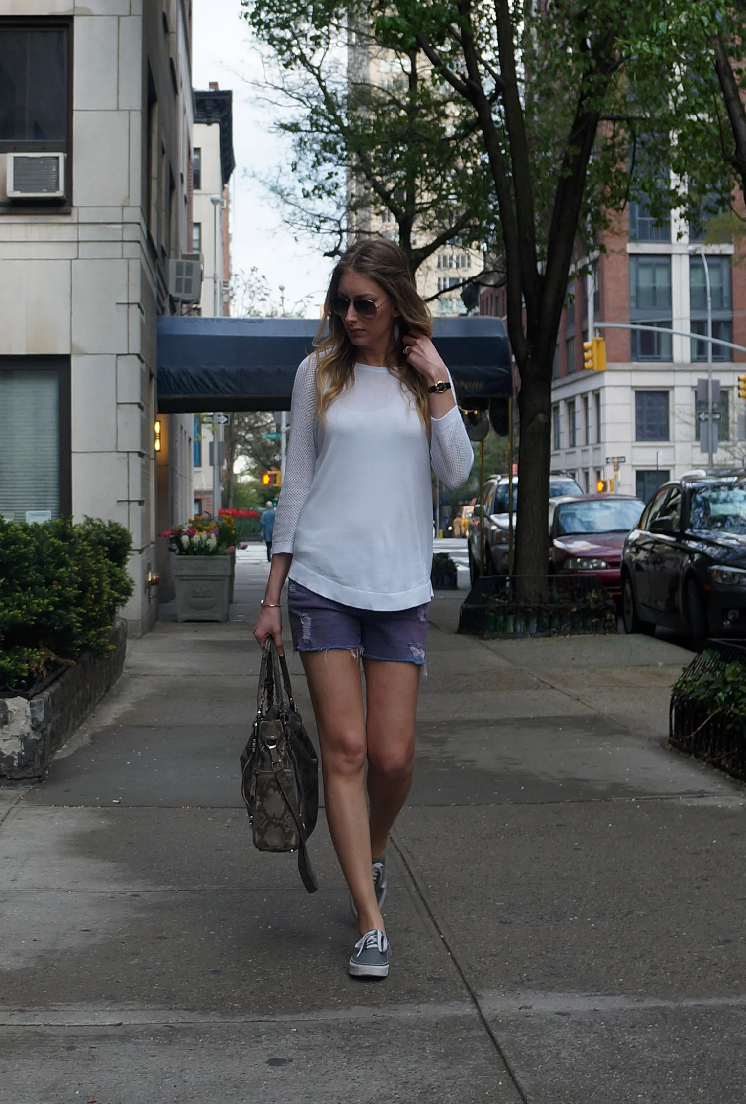 Remember those Rag & Bone boyfriend shorts I posted about last week? If not, check them out here....but while I was grabbing those, I also snatched this amazing mesh sleeve sweater. It's the yummiest fabric and is lightweight and fun and effortless and a million other things. I love it....a lot! I paired it with my Koral shorts from last summer. These are really cool because they're overdye (meaning the garment was dyed again on top of the indigo), and they're distressed. They're super comfy too...always a plus! Finished the look with my favorite casual kicks...grey lace up vans.