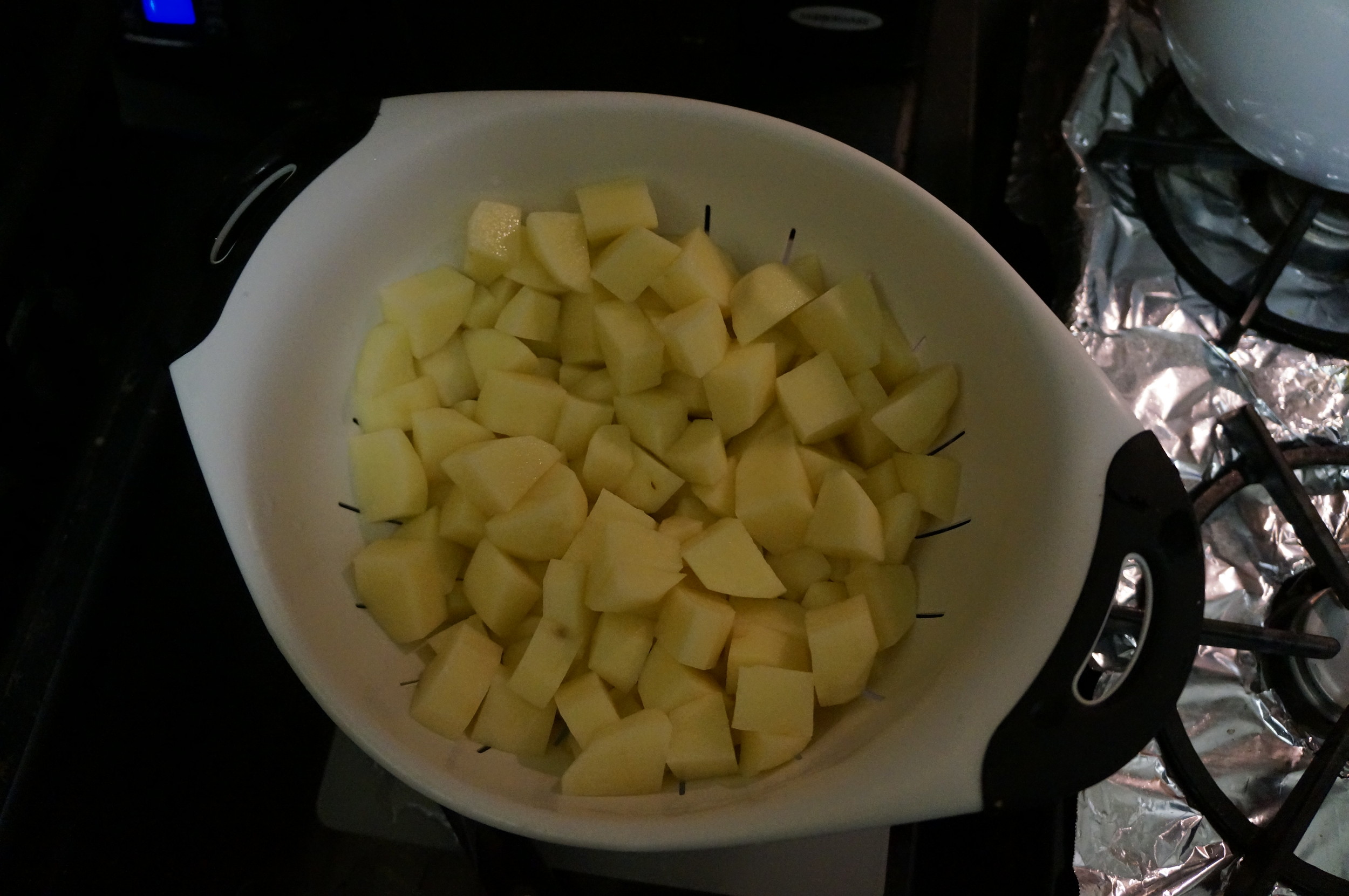 I add these to a pot of boiling, salted water and let them boil for about 20 minutes, or until potatoes are tender.