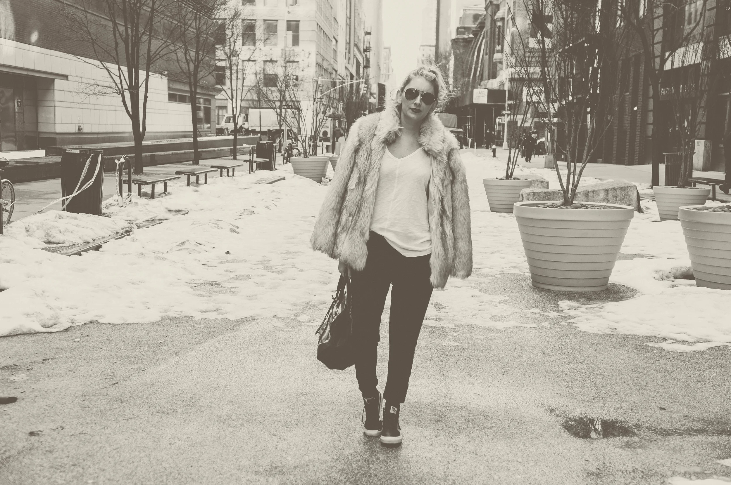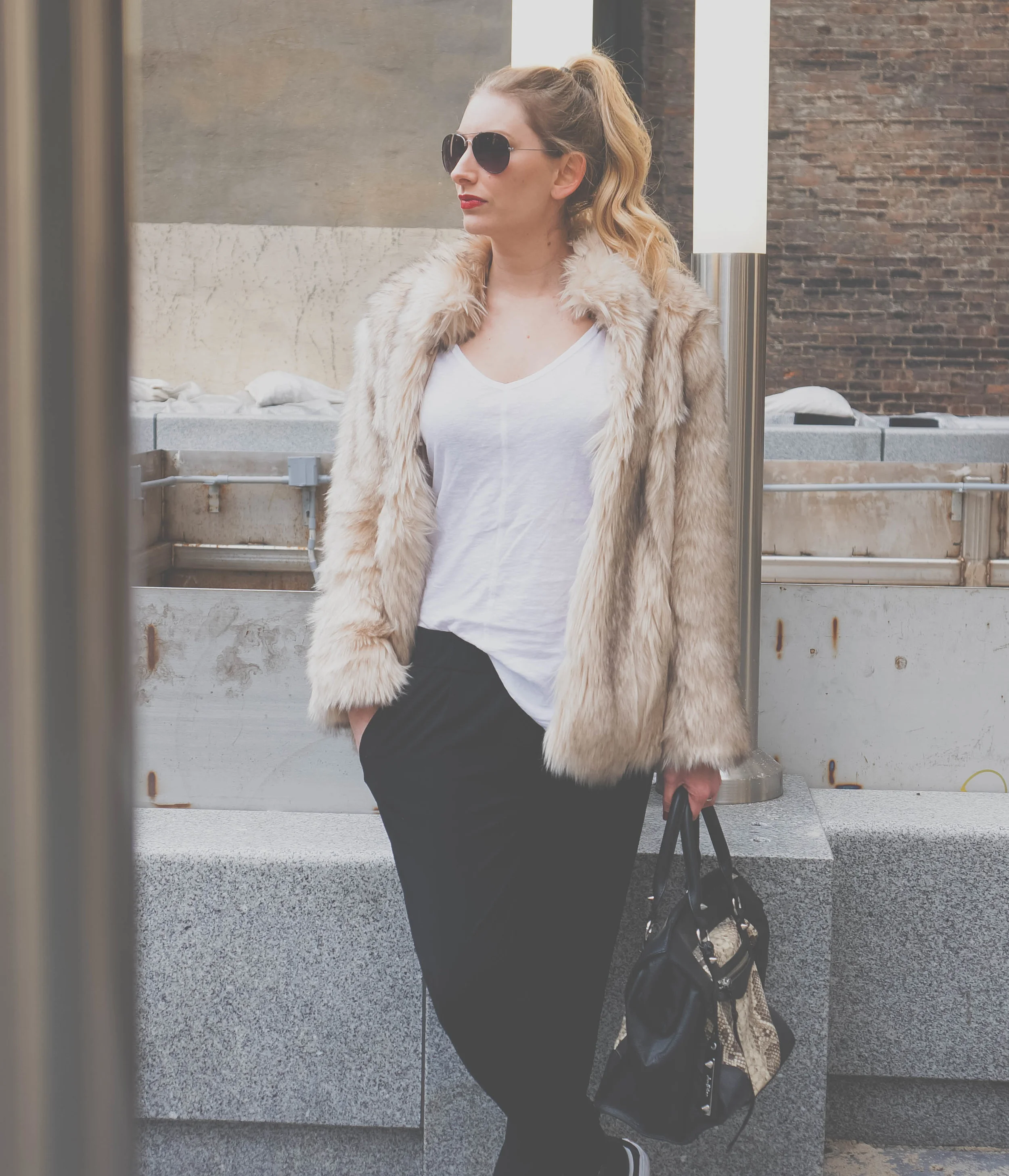 IT FINALLY STOPPED SNOWING! Which means I could finally wear my fun faux fur coat before it officially becomes spring. I'm sure most people would pair something glam like a faux fur coat with something formal. Me? I pair it with joggers, a tee, and sneakers. That's what is so great about individual style...you can do whatever your heart desires and it doesn't necessarily have to be right or wrong. It's you...traditional, funky, conservative, edgy, whatever. Embrace it!