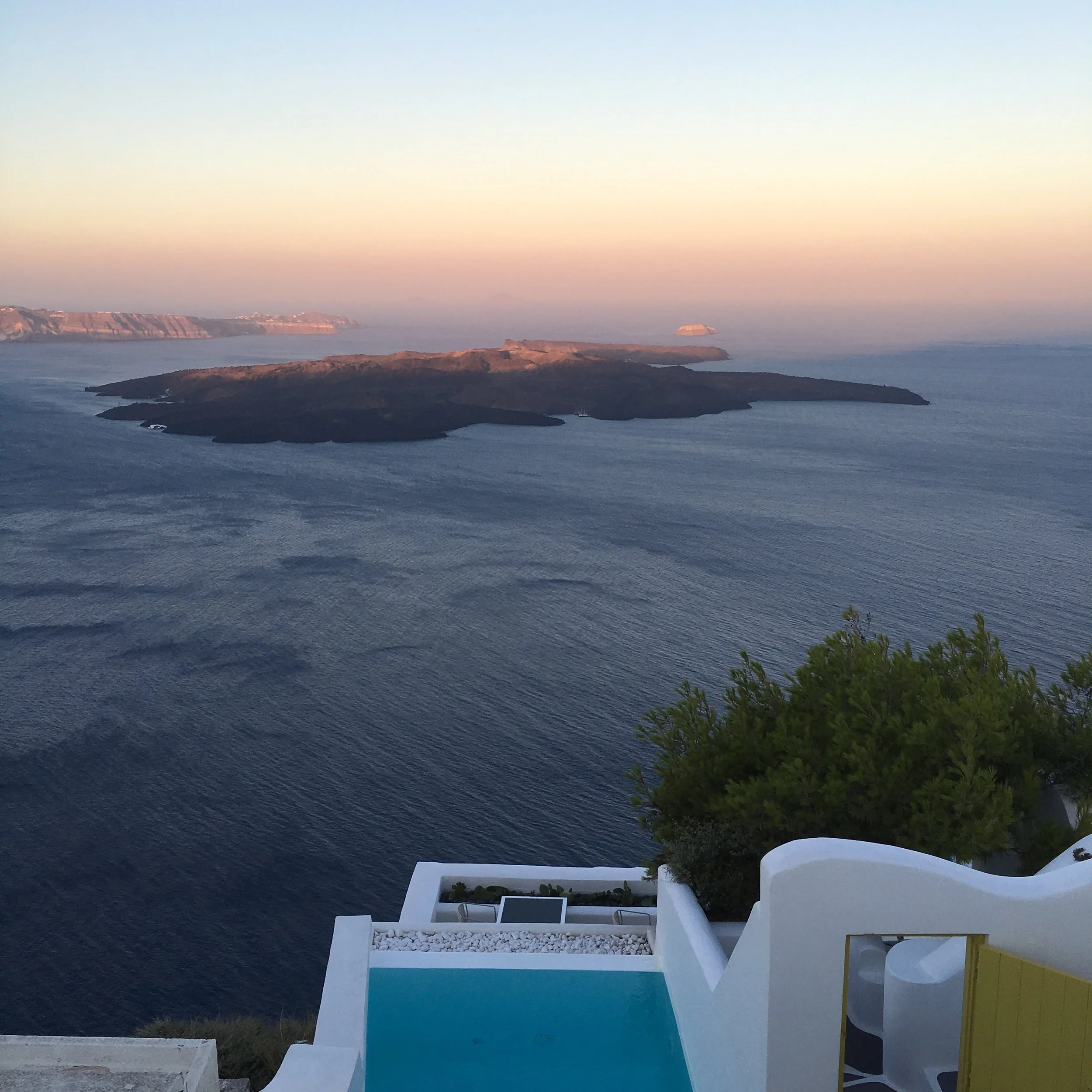 We arrived early in the morning around 7am and our room wasn't available. So we trekked down the main path that snaked along the cliff's edge to Fira, had breakfast, got fish pedicures, and headed back to the resort. Once in our villa, which was absolutely lovely, I changed into my swimsuit, grabbed the complimentary bottle of champagne and jumped in our private pool. While I powered through the first bottle of champagne, and then a second, Dennis went inside to nap. Left by myself, I eventually passed out in the lounge chair, drunk, and woke up two hours later as red as a tomato. Of course I had to wear my new one-piece suit with cut outs...so my tan lines were ridiculous. Once I sobered up a bit, we got ready and headed to dinner at a restaurant recommended by the resort and we stopped at a little shop to buy aloe gel. The shop attendant had no hesitation in letting me know that I'm a complete idiot after I asked if they carried aloe gel and he got a glimpse of my skin. Thanks, asshole.