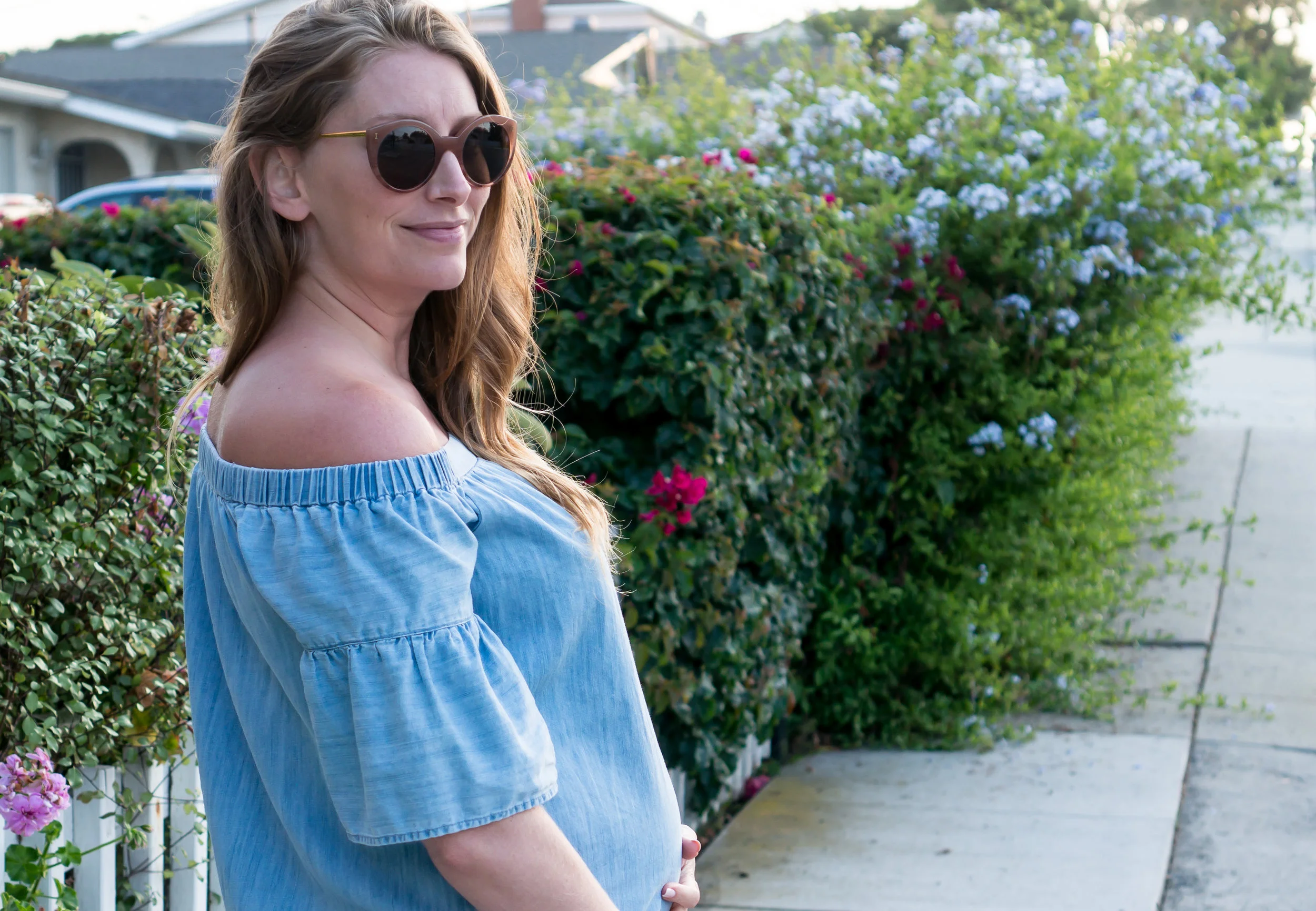 When I bought this dress, it wasn't because I thought it was going to be the "it" silhouette of the summer. It was part of a handful I grabbed at Madewell to wear as my bump got bigger. I spotted this dress and very similar chambray off-shoulder dresses on so many women this weekend while out to brunch with baby daddy. I also wore this dress to my baby shower in Mississippi a few weeks back. I've gotten so many compliments on it, and due to it's popularity, decided to share it with y'all. And no, it's not maternity...still just sizing up ;)